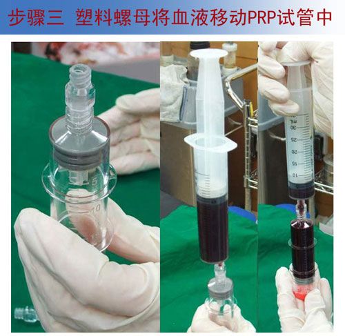 3、利用塑料螺母将注射器里的血液移到PRP试管中进行离心操作